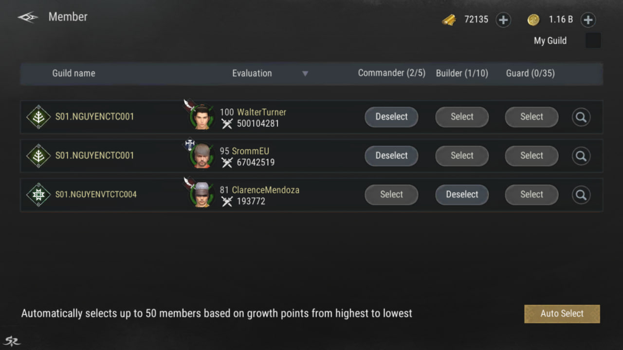 - Alliance Guild: Can form an alliance with either the Attacking Guild or the Defending Guild to support in battle