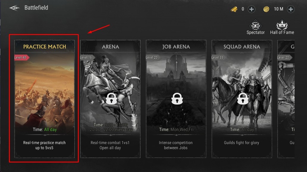 🔹 Step 1: In the Battlefield menu, select Practice Match.