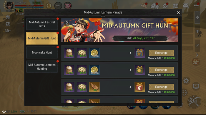 - During the event, Travelers should complete the event mission list to receive Mooncakes and participate in the lucky spin Mid-Autumn Festival Lantern Hunt.