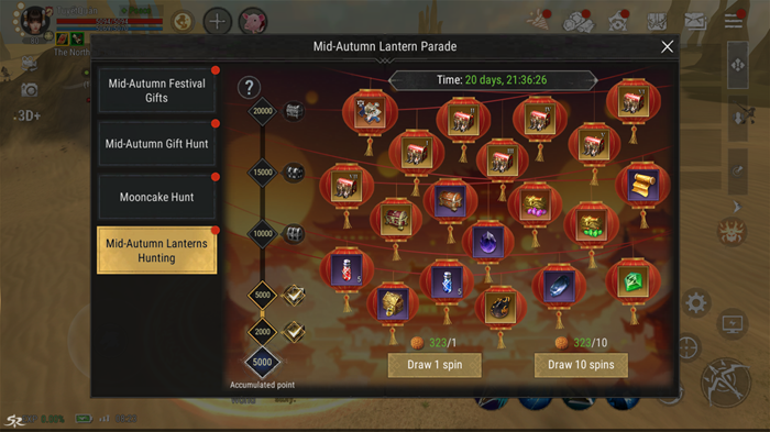 - One spin will earn 10 points, accumulate points to reach the reward milestones to receive Mid-Autumn Ticket to open and choose one of the Seal of Star Equipment