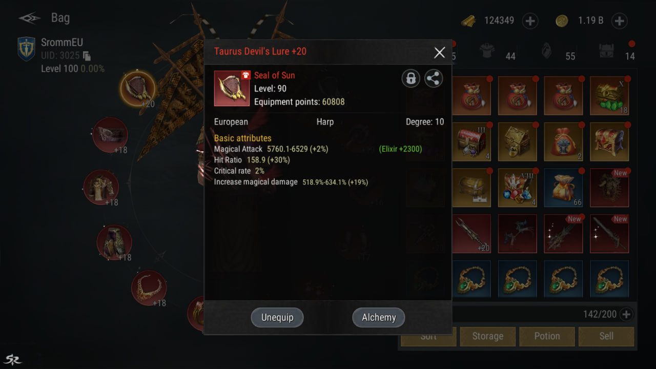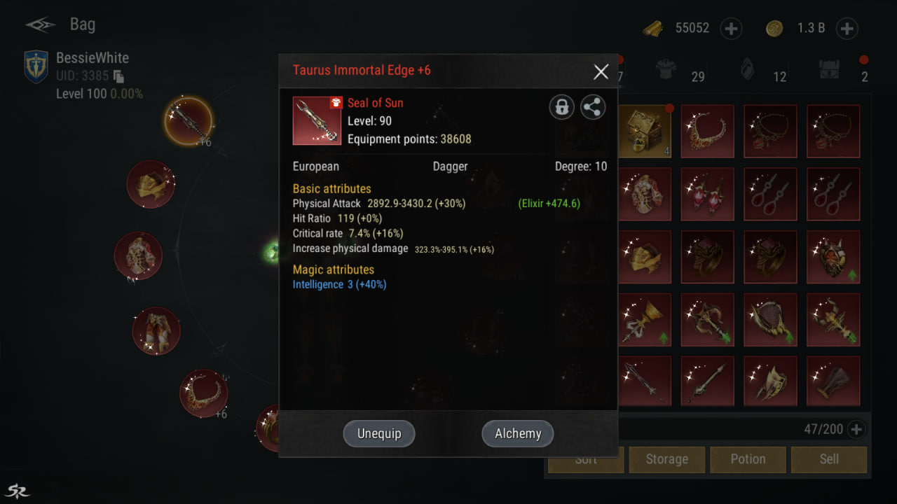 - The equipment level corresponds to the character’s level. Details are as follows: