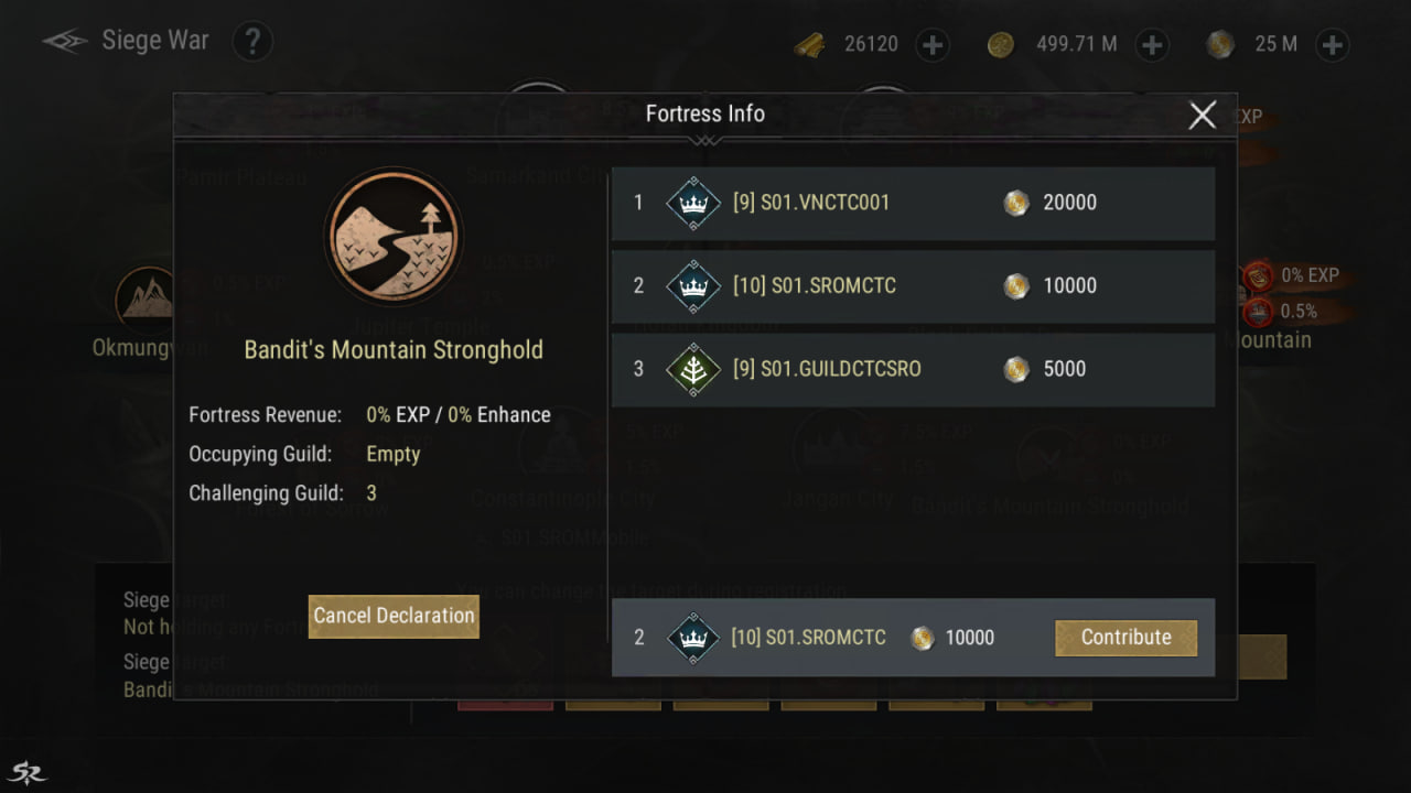 - The top 2 Guilds with the highest deposits will participate in capturing the fortress.