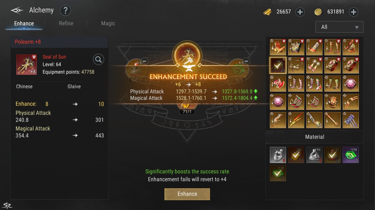- Special alchemy will require a special material called Advanced Elixir (according to Degree). Equipment of any type and level can only use materials corresponding to that type and level.