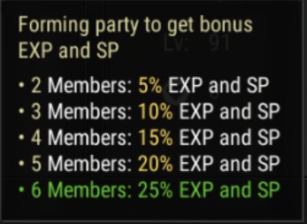 ตัวคูณเพิ่ม/ลด EXP & ESP ตามความต่างเลเวลในโหมดปาร์ตี้ จะถูกนำมาใช้ก็ต่อเมื่อสมาชิกเปิดโหมดแชร์พอยต์ปาร์ตี้ และยืนอยู่ในระยะการแชร์ (200 เมตรรอบจุดที่มอนสเตอร์ถูกกำจัด)